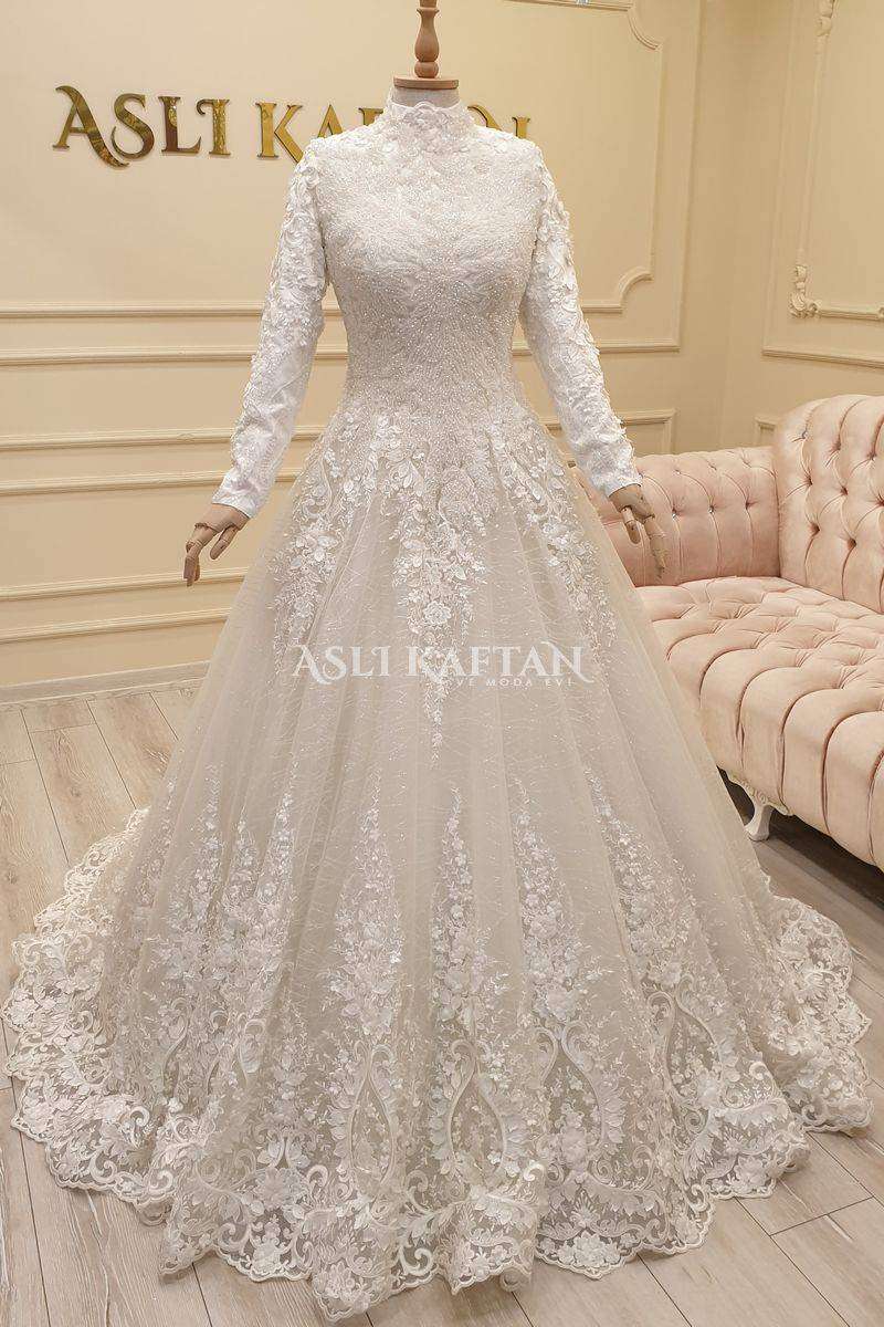Damla Lace Wedding Dress Model, the chest is completely covered with embroidery, and the skirt part is covered with lace. The wedding dress, which has a rather expressive and vivid view, has both beads and laces. Especially the breast embroidery of the wedding dress, which is a favorite of those who like more dynamic wedding dresses, is in the form of floral motifs. The embroidery, which also covers the flat sleeve design, holds glitter beads on it. The embroidery coming down from the waist will spread unevenly over the upper part of the skirt, while at the same time it will make the waist look much thinner. The skirt of the wedding dress, grovel on the floor has laces, and these laces also rise upwards, as a result of which the decorations on both sides meet each other. It is produced as a special sewing.