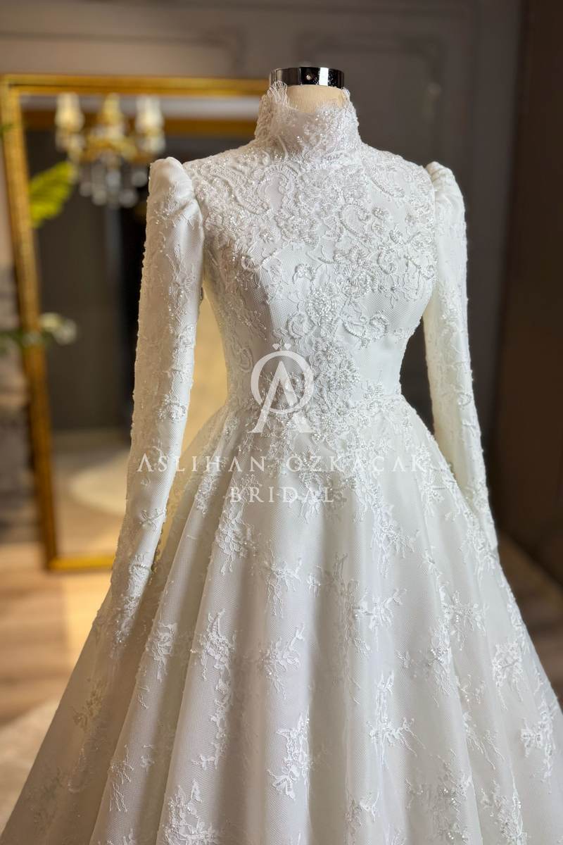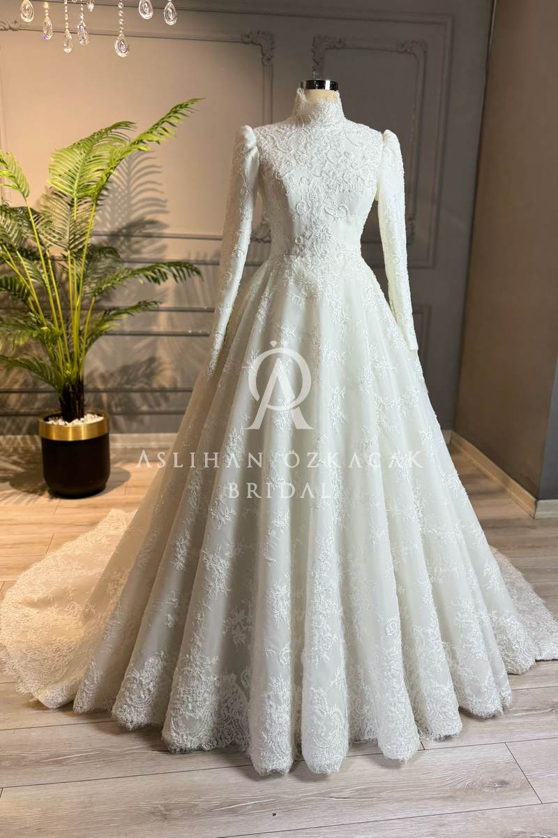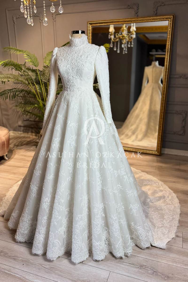 Mila Fransız Dantel Tesettür Gelinlik Modeli