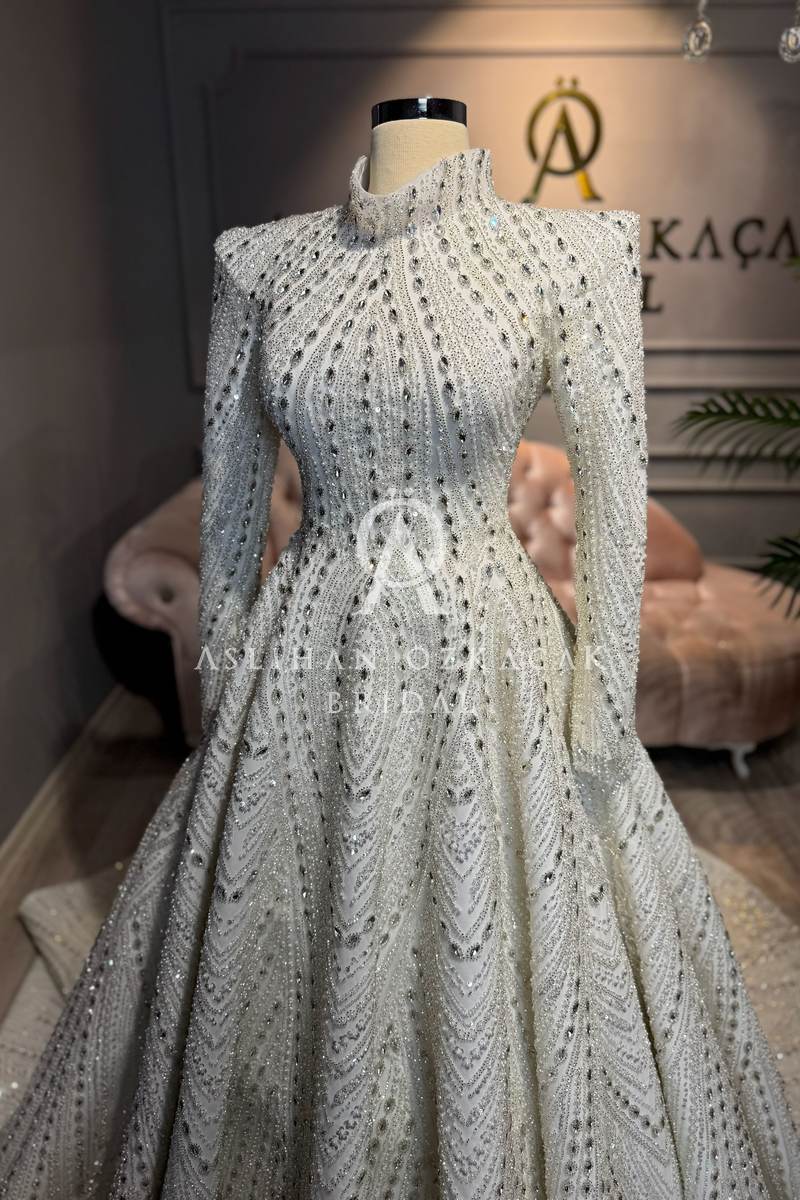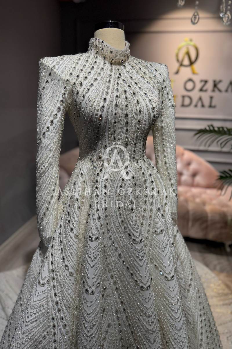 Prestij Kasnak İşlemeli Tesettür Gelinlik Modeli